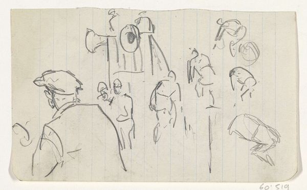 Stanley William Hayter made this piece called 'Work Sheet' in pen, ink, and crayon. It's all about process, like the artist is thinking out loud on the page. There's this great push and pull between chaos and control. The lines are loose, like a doodle, but they’re also precise, creating these strange, almost-figures. See how Hayter uses short, rhythmic marks to build up the forms, how he balances the blacks against the white of the page? Then there's that pop of yellow crayon, like a little sun or a burst of energy. It's like the whole thing is about the joy of making marks, about trying things out. Hayter reminds me a little bit of Picasso, or maybe even Joan Miró, with those biomorphic shapes. But he's got his own thing going on, this real sense of movement and energy. It's a reminder that art is always a conversation, a back-and-forth between artists across time.