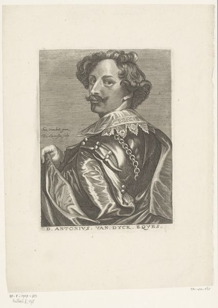 This stipple engraving of Anthony van Dyck was made by Friedrich Fleischmann, probably in the early 19th century. The stipple engraving process is fascinating. Unlike traditional line engraving, which relies on clear, continuous lines, stipple engraving uses a pattern of tiny dots to create tone and form. Think of it as a kind of pointillism, but done with the burin on a copper plate. The density and distribution of the dots determine the darkness or lightness of an area, allowing for subtle gradations and soft effects. This method allowed Fleischmann to capture the texture of Van Dyck’s hair and clothing, and the subtle play of light on his face. It's a labor-intensive process, demanding incredible patience and precision from the engraver. Fleischmann masterfully worked within the graphic vocabulary available to him at the time, creating a compelling image. The print sits within a much wider world of reproductive printmaking. It reminds us that many artists made their livings translating paintings into affordable prints. This portrait shows the immense skill required to make these kinds of images and how they blur the boundary between craft and fine art.