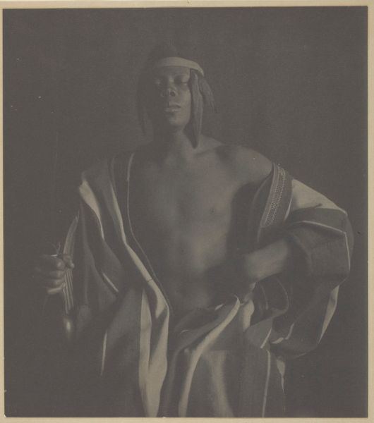 "Ethiopian Monarch" is a photograph created by F. Holland Day. This image captures the likeness of a young Black man, but through the title, it evokes questions about the exoticization of Black identity in the late 19th and early 20th centuries. Day was part of the Pictorialist movement, and he often explored themes of race, religion, and sexuality. This work blurs the line between portraiture and symbolic representation. The subject's gaze is both commanding and vulnerable, challenging the viewer to consider the complexities of representation. "I am not white, nor male, nor rich, but I am all artist" Day claimed. The photograph prompts us to reflect on the historical power dynamics inherent in image-making, as well as on the artist's own position within a society marked by racial and cultural hierarchies. It compels us to confront the stereotypes that have historically shaped perceptions of Black identity.