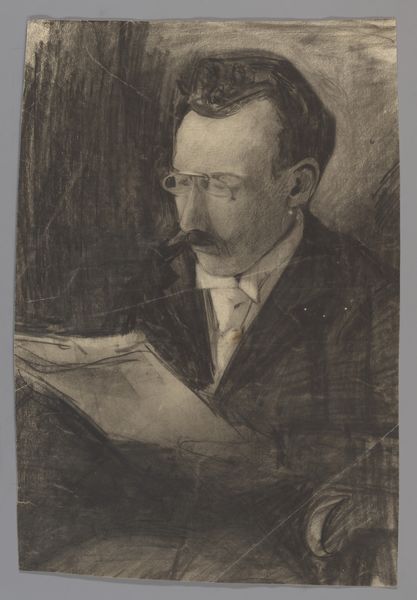 Anders Zorn made this print of Paul Henri Benjamin d'Estournelles de Constant using etching, a process of mark-making, where the artist scratches into a metal plate before adding ink. Look at the lines that make up the face. See how they build up, crisscrossing to create shadows and depth. The cross-hatching feels almost frantic, capturing a fleeting moment. D'Estournelles de Constant sits with his head resting on his hand, he seems to be deep in thought. The frenetic marks add to this sense of an active mind. Now, notice the background. It's a flurry of scribbles. Zorn doesn't give us much detail, but the suggestive lines hint at a room filled with books and papers. This print reminds me a bit of Whistler's etchings, in the way it captures a likeness with such economy of line, the two were both masters of the technique. The beauty of printmaking is its capacity to imply and suggest rather than fully describe; inviting us to participate in completing the picture.