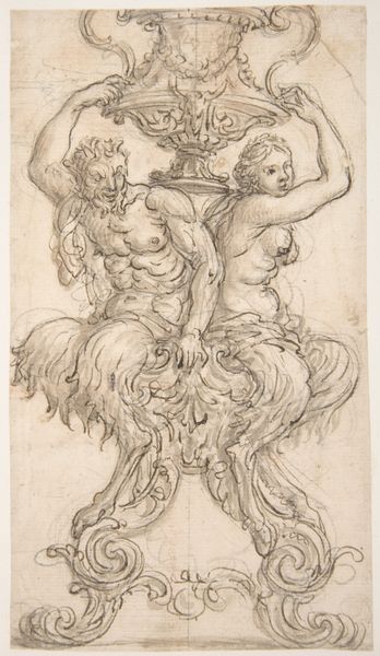 Curator: Marco Dente created this engraving, titled "Satyr carrying a nymph restraining her right arm," sometime between 1510 and 1532. The piece resides here at the Metropolitan Museum of Art. Editor: Woah, the first thing that jumps out is how not-chill this looks. The nymph looks seriously stressed, trying to squirm away from this...satyr? Curator: Right, and we must understand that representations like these are firmly rooted within patriarchal power structures. The act of abduction, common in classical mythology, often serves to justify male dominance and female subjugation. This work presents such a narrative for contemplation. Editor: Contemplation is one word for it! It also feels a bit…voyeuristic? Like we're peering in on something we shouldn't be. Is that the Renaissance trying to titillate or tell some grand moral story, do you think? Curator: Perhaps it's both? Renaissance art was rife with complex allegories, and representations of mythological figures frequently addressed societal morals and desires, however, often from a male-centered perspective, it is relevant to note. The nymph’s struggle embodies resistance. Dente doesn't explicitly condone the satyr’s actions, but leaves the audience to interpret the tension. Editor: So, less a celebration of kidnapping, more a snapshot of a cultural power dynamic? Although that doesn’t exactly make it easier to look at today. The woman looks seriously unhappy. The satyr seems a bit oblivious in a clumsy and weird way. Curator: Precisely. The Italian Renaissance interpretation and depiction of such figures tells as much about the values and expectations of the male gaze during that period, which inevitably informs a perspective that objectifies and eroticizes the female form. Editor: I see what you mean. Still, I wish she was winning! Thanks for that little peek behind the curtain. I'll definitely look at other engravings of the Renaissance in a slightly more informed, albeit wary, way. Curator: Understanding the context lets us question these historical power dynamics within the artwork and even apply the interrogation to our current values, as well.