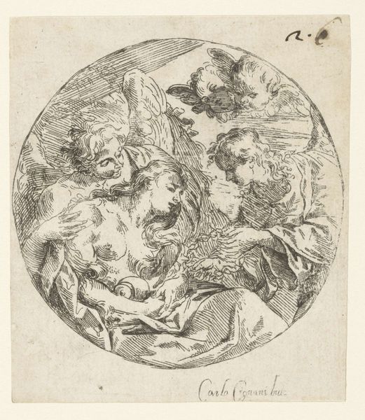 Curator: Agnolo Bronzino's drawing, "The Fall of Phaethon," dating from about 1555 to 1559, vividly captures a moment of divine retribution. What are your immediate thoughts looking at this pencil drawing? Editor: Chaos! The eye struggles to find a stable point. It's a cascade of bodies, equine and human, all rendered with this incredibly sharp, almost academic precision that seems at odds with the subject matter. Curator: The figures certainly exude that Mannerist elongation and idealized form. But consider Phaeton himself. Plunging from the heavens, a victim of his own hubris in attempting to drive the chariot of the sun. The image reverberates with warnings about unchecked ambition. Editor: True, but the composition pushes the narrative towards overload. I mean, look at the anatomical detail in the horses! Bronzino's meticulous approach ironically undermines the drama. We see a skillful study of forms in dynamic disarray, rather than feeling the cataclysm. Curator: I disagree. That careful rendering heightens the tragedy. These are not just bodies, but representations of classical ideals, violently disrupted. The cluster of terrified river gods below anticipates the repercussions of Phaeton's actions – a visual metaphor for cosmic disorder. The pencil becomes almost like an instrument of psychological excavation. Editor: Perhaps, but the detachment remains. The tonal range is limited; the shadows meticulously hatched, never truly engulfing. I find it intellectually engaging but emotionally...muted. The symbolism doesn’t necessarily translate into raw feeling for me. Curator: Consider the myth's cultural function in 16th-century Italy. It served as a potent reminder of the importance of order, tradition, and respecting established hierarchies –values crucial to the ruling families who commissioned such works. The image speaks, not only to Phaeton's personal downfall, but to the wider implications of disrupting the social fabric. Editor: An intriguing point. Seeing it now less as an exercise in anatomical virtuosity, I can almost see that coldness almost amplifying a more calculated kind of dread. Still, technically the piece does sacrifice that sense of immediacy in pursuit of that tight formal articulation. Curator: So, maybe we meet in the middle –a meticulously rendered fall from grace that speaks volumes about the anxieties of its time. Editor: A persuasive final reading, that makes you consider just how powerful even in pencil is this Italian Renaissance exploration into narrative.
