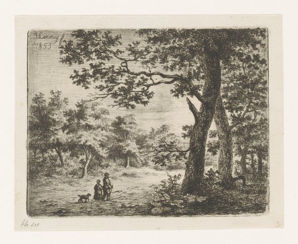 Ernst Willem Jan Bagelaar created this etching, *Hilly landscape with two resting walkers,* at the turn of the 19th century in the Netherlands. At first glance it seems a harmless scene, but landscape depictions during this period played a crucial role in shaping national identity and cultural values. They were a way of seeing and experiencing nature that reflected a particular ideology. The Romantics valorized the unspoiled, sublime aspects of nature. But here, the artist is not looking at the sublime. Instead, Bagelaar brings the viewer into an intimate scene, with ordinary people at rest, enjoying the quiet solitude of nature. By choosing to portray figures in the landscape, Bagelaar subtly comments on the role of humans within the natural world. To understand the cultural context, historical surveys and travelogues can provide rich insights into the relationship between landscape, national identity, and social change in the Netherlands at this time.
