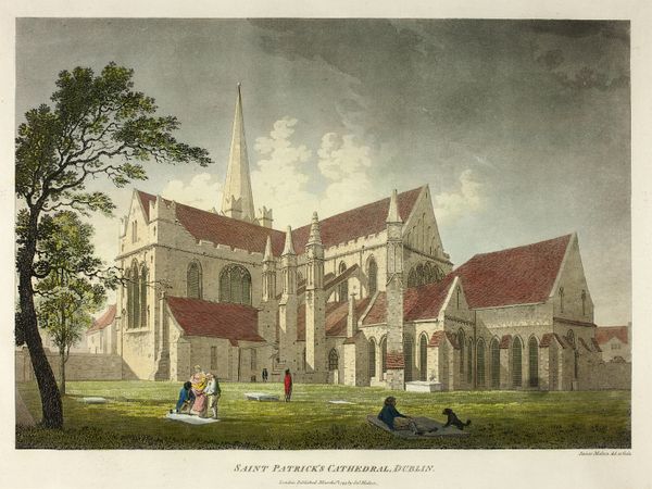 Curator: Here we have François Vivares' "Lincoln Cathedral: North-West Prospect," found in the Harvard Art Museums. It certainly gives an impression of imposing grandeur, doesn't it? Editor: Indeed, the cathedral looms with an almost ethereal presence. The spires reaching towards the heavens evoke a sense of profound spiritual aspiration. Curator: Vivares, through his printmaking process, is really emphasizing the sheer scale of the building. Consider the labor and resources required to erect such a structure. Editor: And the cathedral, as a symbol, stands for centuries of faith, community, and the aspirations of generations who sought solace and meaning within its walls. Curator: The materiality speaks volumes, too. The stone, the craftsmanship... it's all a testament to human ingenuity and the power of collective effort. Editor: It's a potent image, capturing both earthly ambition and the longing for something beyond. Curator: I find myself contemplating the relationship between power structures and the labor that sustains them. Editor: I find myself thinking about cathedrals as an evolving emblem of Western identity.