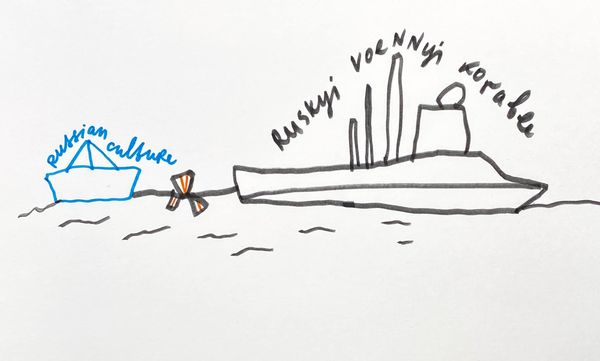 Alevtyna Kakhidze made this poignant untitled drawing with pen and colored pencil. You can really sense the artist working through her thoughts. The rawness of the materials is so telling. It is immediate and feels unrehearsed. I am drawn to the figure on the left who holds a sign reading "Statements". What kind of statements do you think they are referring to, and how might they be inadequate? The blue teardrops really bring this home. It reminds me that art can be about asking questions, not necessarily providing answers, inviting us into a shared space of uncertainty. Kakhidze's practice reminds me of the work of Philip Guston; both artists possess the courage to embrace vulnerability. It's a reminder that art thrives in the realm of the unsaid, the unresolved, and the deeply felt.
