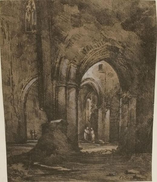 Editor: This is John Sell Cotman's "North Creake Abbey, Norfolk." It's a pencil and wash drawing, and I’m struck by how Cotman captures the ruin’s solemnity, yet there’s a certain peacefulness with the cows grazing. What do you see in this piece? Curator: I see a poignant dance between decay and enduring beauty. Cotman seems to be asking us, "What survives, and what truly matters?" The abbey crumbles, yet life continues. It's a lovely, quiet meditation, don't you think? Editor: Definitely! I hadn’t thought about that tension between ruin and life. Thanks for pointing that out. Curator: My pleasure. These quiet works often whisper the loudest.