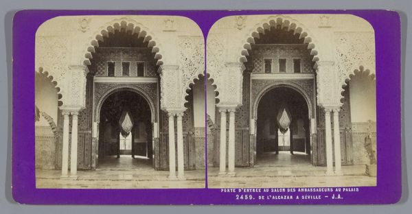 Rafael Garzón created this photograph of the entrance to the Moorish King’s Dormitory in Seville's Royal Alcázar palace sometime between the late 19th and early 20th centuries. The Alcázar's architecture reflects Seville's complex history, bearing elements of Islamic, Gothic, and Renaissance styles. Garzón’s image captures the intricate geometric patterns and horseshoe arches characteristic of Moorish design, and in his choice of subject, he is participating in a popular fascination at the time. The late 19th century saw a rise in Orientalism, a Western fascination with and often romanticized interpretation of the "exotic" cultures of the East, particularly the Middle East and North Africa. Spain, with its Moorish past, became a focal point for such interests. Garzón, as a photographer in Seville, catered to this market, producing images of the city's architectural heritage that emphasized its "Arab" past. Understanding this image requires us to look into the history of Orientalism, architectural history, and photographic practices of the period. The role of art is always contingent on its social and historical context.