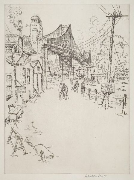 John Winkler made this etching called "Old Wharves of San Francisco," and it's all about the magic of lines. It feels so process-oriented; you can practically see him drawing, scratching those lines into the metal plate. There’s this incredible layering of marks, a real sense of depth created by the density of lines in some areas and the sparse, delicate touches in others. The way he renders the buildings on the hill, it’s almost like a controlled chaos. Look at the randomness of the lines forming the planks in the foreground; it’s so free. It feels like he’s embracing imperfection. It reminds me of Piranesi, who was great at creating atmosphere, or maybe some of those early 20th-century American etchers who were capturing the gritty urban landscape. But Winkler brings a uniquely personal touch. It's a reminder that art isn't about perfection but about embracing the possibilities.