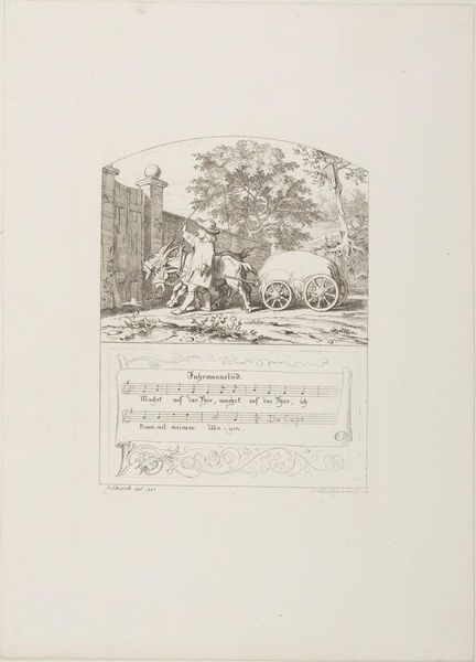 Editor: This print, "Children Playing," artist unknown, feels like a page torn from a storybook. It's got a nostalgic charm. I'm curious, what do you see in this piece? Curator: It's funny you say storybook, because I think that's exactly the feeling the artist was going for! This work is all about memory and innocence. I'm struck by how this artist manages to capture a kind of playful spontaneity, don't you think? Editor: I see what you mean. Is there something about it that particularly resonates with you? Curator: For me, it's how the artist makes me want to get back in touch with a feeling I had a long time ago, the kind of joy that comes naturally. Editor: Thank you. It feels like it's more than just a picture of children playing.