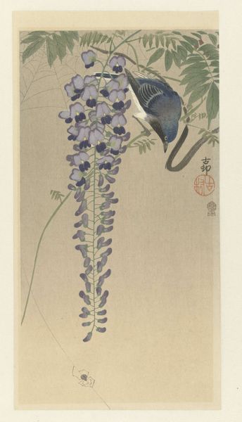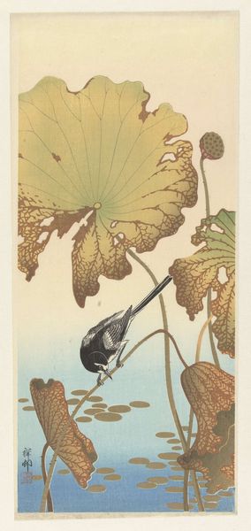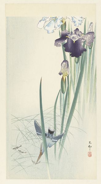 Ohara Koson made this woodblock print, "Zilverreiger," sometime between the late 19th and early 20th centuries, capturing a moment with such elegant simplicity. The marks feel so essential, each one contributing to the overall harmony of the piece. It's like Koson is showing us how much can be said with so little. Looking at the way the water is rendered, those horizontal lines create such a sense of stillness and reflection. And the heron itself, with its delicate lines and gentle curve of the neck, it's like a study in grace. The way the irises are placed above the bird, they create a sense of depth and balance. It makes me think of Hokusai, but with a quieter, more intimate feel. This piece isn't trying to shout, it's inviting you to pause, to breathe, and to appreciate the beauty of the natural world. It is the kind of art that reminds you that less really can be more.