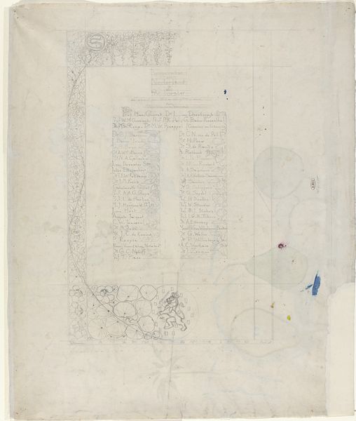 Editor: This is a “Decorative Design” from around 1874 to 1945 by Carel Adolph Lion Cachet, created with ink on paper. It’s housed here at the Rijksmuseum. I find it incredibly detailed, almost like a blueprint with these ornate, organic shapes constrained by a strict grid. What compositional elements strike you? Curator: Note how the grid provides structure but doesn’t stifle the artist's more fluid, curvilinear flourishes. Observe the tension between order and spontaneity here. What principles of semiotics can be applied when analysing these stylistic oppositions? Editor: The grid acts almost like a scaffolding, letting the design stand out. I notice similar ornate designs on period furniture from that time. The question, how would a formalist engage with the question of intentionality of art forms like decorative design that are intended for function over meaning? Curator: Excellent point. As formalists, we can set the problem of intention aside and direct attention toward line quality, the interplay of positive and negative space, the weight given to certain compositional features relative to the design’s functionality. Does this resonate? Editor: Yes, absolutely! So, it’s about recognizing the piece's own formal vocabulary as opposed to what it's meant to do or represent. I guess I was trying to ask where the beauty lies: within the design elements that transcend their utilitarian intentions? Curator: Precisely. One can look for what the structure and design contributes and what it doesn’t. What features are accentuated through their position? Can we deduce a philosophy of aesthetics from the arrangement of shapes, lines, and forms in relation to its surface or format? Editor: I see that the visual design and functionality of the original objects is connected by formal principles of art! The emphasis is less on the artwork as concept and more as an experience rooted in its own elements, like the relationship of shape, shade, and texture. Curator: Exactly. And a closer look might reveal other elements, or reinforce the features we've noted! Thank you.