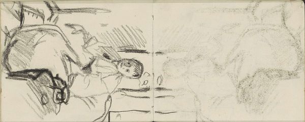 Curator: Hermannus Adrianus van Oosterzee's 1893 pencil drawing, "Landschap met bomen," invites us to consider the very nature of observation. Editor: It's undeniably bleak. I see struggle here—the way the forms strain, the almost desperate quality of the pencil strokes. It feels more like an emotional landscape than a literal one. Curator: Observe how van Oosterzee orchestrates light and shadow. Notice the weight of the drawn line as it models depth and establishes the atmospheric perspective of receding space, however compressed. The rapid strokes create a kind of vibration within the composition itself. Editor: A vibration of anxiety, I'd argue. There is something inherently disquieting in the image's incompleteness. Van Oosterzee created this piece during a period of significant colonial expansion for the Netherlands. It speaks, to me, of nature under threat. What's elided is just as important as what's rendered, right? It exposes a tentative relationship to place. Curator: The absence of detail isn't necessarily an absence of intent. The expressive minimalism concentrates the gaze. Focus on the recurring motifs and subtle contrasts that define Oosterzee's language of nature. The visual economy—it compels a certain attentiveness to the skeletal structure of the composition itself. Editor: And I read the exposed structural elements as metaphors for instability, particularly given the social conditions that frame this work. Think of the artist's relationship to a landscape already undergoing profound transformation—the imposition of boundaries, extraction of resources... Curator: But isn't this projection imposing contemporary concerns on a prior aesthetic framework? What remains forceful is the drawing’s ability to negotiate representation through tonal values alone. Its stark composition makes its point precisely. Editor: Perhaps. But, if we allow ourselves to think through these supposed frameworks, this simple "pen sketch," as some classify it, it starts communicating an awareness of how fragile this environment might really be, a tension of place. Curator: A worthwhile counterpoint. Indeed, perhaps both a careful consideration of formal elements and sociopolitical context together are equally helpful to appreciating Oosterzee's initial sketch. Editor: And hopefully prompt future, meaningful interactions with this overlooked sketch.