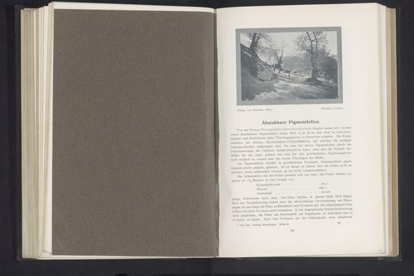 Editor: So, this is Léonard Misonne’s "Winterlandschap," from before 1903. It’s… a photograph reproduced in what looks like a publication. I’m immediately drawn to the almost melancholic feel of the scene. What do you see in this piece, in terms of its historical context? Curator: What strikes me is the presentation of the image within this book. The "Winterlandschap" isn't simply a standalone artwork here; it's presented and contextualized as part of a larger discourse on art photography, specifically within the context of the "Zehnte Internationale Ausstellung von Kunstphotographien zu Hamburg." So, what does this placement within a publication suggest to you about the role of photography at the time? Editor: It makes me think about the push to legitimize photography as an art form. Placing it in the context of an international exhibition, documenting it in print—it's all about building an institutional framework around it. Curator: Exactly. It highlights the socio-political dimensions of photography. The deliberate choice to include it in an exhibition and publication underscores the intention of those in power to actively cultivate an appreciation for it. The exhibition and subsequent publications are an attempt to influence public opinion on photography’s artistic merit. Does that shift your initial impression? Editor: Yes, it definitely adds another layer. It's not just about the image itself, but about its intended audience and how it's framed. It was meant to sway thinking. Curator: Precisely. Consider the institutions – like photographic societies – that held significant sway. So much meaning resides within the interplay between image and context. Editor: I never considered how publications can reinforce certain perspectives on a work’s merit, it is enlightening to contemplate the intentional choices. Curator: And the deliberate construction of the art world itself.