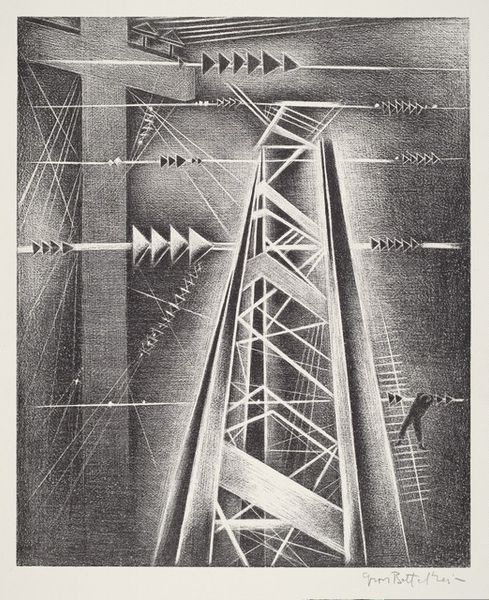 Jolán Gross-Bettelheim made this small print, Moving of Lines, which buzzes with a particular kind of visual energy. It's all in the mark-making, the way the lines are laid down to create this fractured space. Check out how the lines build up the forms, creating depth and shadow through simple hatching. Look at the top right corner of the bridge: the cross-hatching makes it seem as though the architectural forms are emerging from the darkness. The linear construction almost looks like Cubism gone wild. It reminds me of Piranesi's etchings, with his dark, cavernous prisons. I love how the lines aren't precious or overly refined; there's a kind of raw energy to them. It's like she's trying to capture the speed and dynamism of the modern world, not just represent it. Gross-Bettelheim's work is such an interesting echo of Italian Futurism, but from a different angle, a different sensibility. It's like listening to a conversation between artists across time and space.