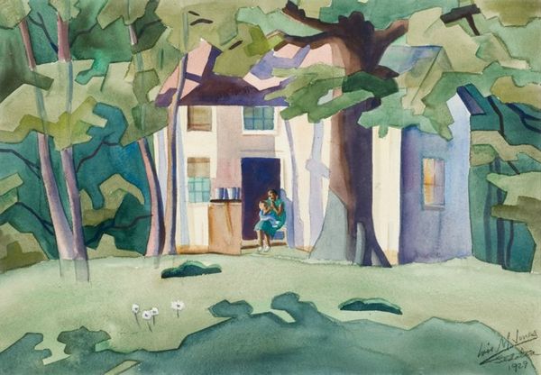Editor: Here we have Edward Hopper’s "Seven A.M.," painted in 1948, currently residing at the Whitney. It’s an oil painting that depicts the façade of a building, seemingly a small business, next to a dark, almost imposing forest. I’m immediately struck by the stark contrast between the mundane architecture and the rather ominous nature pressing in. What draws your attention in this piece? Curator: What immediately strikes me is how Hopper uses architecture to comment on the American landscape and the isolation of modern life, something the Ashcan school did. Consider the historical context: post-war America saw a surge in suburban development, small businesses struggling against big corporations, and the feeling of anonymity that came with rapid urbanization. Hopper captures this tension perfectly. Notice how the building's harsh geometry is juxtaposed with the organic, almost unruly forest. Do you see that tension? Editor: I do. It’s like two worlds colliding – one man-made and the other natural, but they don't quite mesh. And the lighting emphasizes that contrast. The building seems artificially bright. It's like a stage set. Curator: Exactly. This deliberate contrast highlights the artificiality Hopper associated with the public role. The “stage set,” as you call it, serves to question our perception of what is public versus private and its affectations. Think about the objects displayed in the shop window, deliberately arranged for public consumption and its commerce. It also makes one question to what extent such displays reflect any true commerce or honest transaction between one another. Editor: So, it's less about the literal scene and more about Hopper critiquing the cultural and societal shifts happening around him? It seems very different than straightforward Realism. Curator: Precisely. Hopper employed realism as a tool to unpack those cultural shifts. He questions the values promoted and imposed by a society prioritizing superficial representation over authentic human connection, a kind of counterpoint. So, looking at “Seven A.M.,” how has your interpretation evolved? Editor: I now see beyond just the surface depiction to understand Hopper's commentary on the anxieties of post-war America. It is pretty powerful stuff! Thank you! Curator: My pleasure! I also appreciate your take on this too, emphasizing that push-pull dynamic.
