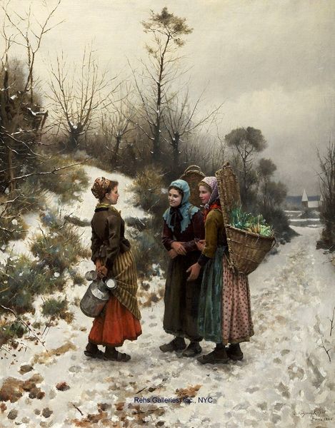 Hans Andersen Brendekilde made this painting, titled "Children on a Country Road," using oil paints on canvas, a very traditional method. Look closely, and you can see the ways in which Brendekilde has built up the paint to create a sense of depth and texture. The road, for example, is not just a flat surface but a complex layering of browns, grays, and ochres. Notice how the artist used visible brushstrokes to depict the children’s clothing, lending a tactile quality to the scene. The overcast sky, also created with layers of paint, evokes a somber mood. The artist's attention to detail – the play of light on the leaves, the texture of the children's clothing – invites us to consider the dignity of labor and the realities of rural life. It makes us question the romanticization of the countryside, a theme often found in art, instead focusing on the everyday experiences of these figures. By focusing on the materials and the making, we can read this painting not just as a depiction of a scene, but as a commentary on society, class, and the value of work.