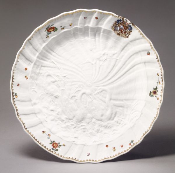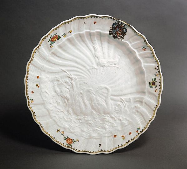This dish was made by Albert-Louis Dammouse. It's made of porcelain, a refined ceramic prized for its smooth, white surface and delicate nature. Dammouse has used the *pâte-sur-pâte* technique, which involves layering liquid clay, or slip, onto the surface to create raised decoration. The process demands a steady hand and keen eye, as each layer must be carefully applied and allowed to dry before the next. The dish has been fired at a high temperature to achieve its vitrified, glass-like quality. This makes it durable, but also gives it a sense of refinement. Notice the gold trim around the edges, which adds a touch of luxury. Dammouse worked at a time when ceramics was undergoing a revival, with artists exploring new techniques and aesthetics. The process of creating a piece like this would have required a combination of technical skill, artistic vision, and a deep understanding of the materials. It's a reminder that even everyday objects can be elevated to art through craft and design.