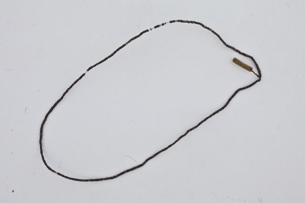 Curator: Oh, what a delicate whisper from the past! Look at this, everyone—a watch chain, believed to be made around 1840-1845 by Firma W. Vinke Larsen. Just a slender thread against the sands of time. Editor: There’s a simple elegance, isn’t there? Like a forgotten secret, waiting to be told again. I'm immediately struck by the spareness, the quiet utility of the design. It’s less about adornment and more about purpose, wouldn’t you say? Curator: Absolutely, purpose distilled to its essence! Think about it—it was created in a period that saw an increasing rise in punctuality and industrial work ethic. That watch, ticking away in a gentleman’s pocket, governed the pace of so much. The gold fittings, such restrained glimmers! And the cord, dark and tightly wound. Editor: The cord almost has a severe look. It speaks volumes, too, about the relationship people had with objects then. Everything made with such careful intention, destined to be cherished, not casually replaced like…well, like everything these days. Can you imagine what this little chain must have witnessed? Courtships, business deals, perhaps even…dramatic declarations? Curator: (Laughs) Oh, the silent confidante! And the social implications! Watch chains weren't just practical; they telegraphed status. The weight of the gold, the intricacy of the design—it all hinted at prosperity. Editor: It's amazing how one simple line of cord can signify so much. This makes me reflect upon time's passage—all of our ephemeral efforts. One wonders, looking back, what is actually achieved versus what is ultimately merely witnessed. Curator: Time's steady tick. Even though so little remains, a delicate reminder that there’s such weight and significance to all we choose to hold onto. It's strangely haunting, don’t you think? Editor: Absolutely haunting and all its complexities laid out on stark view with such an innocuous little artifact. Thanks to it we will think about time and value both little and great now.