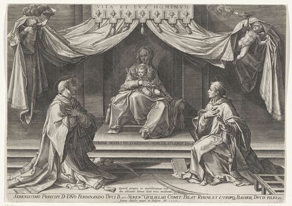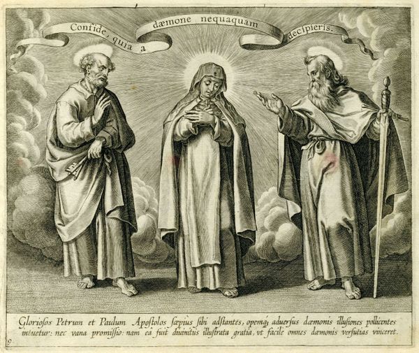 This print, Ignatius Gets Visions, was made by Karel van Mallery in the 17th century. It's a detailed engraving, achieved by carefully incising lines into a metal plate, which is then inked and pressed onto paper. The stark contrast of light and shadow is created entirely through this network of lines. The artist’s skill is apparent in the variation of these lines, closely placed to create darker tones, further apart for lighter areas. This technique allowed for the mass production of images at a time when demand for religious iconography was high. Consider the labor involved in creating such a detailed image, and the skill required to master the engraving technique. This print exemplifies the intersection of art, craft, and commerce, and it reminds us that even seemingly simple images can be the product of great skill and effort.