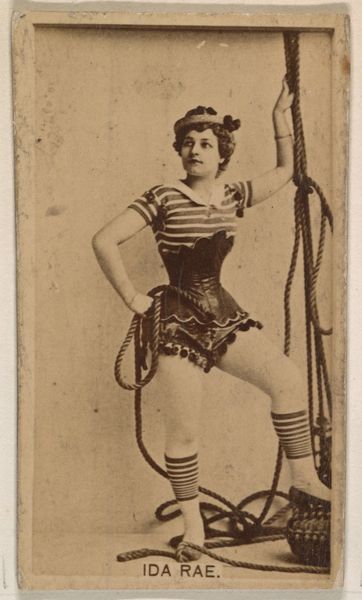This card, one of Allen & Ginter’s Actors and Actresses series, captures a performer raising a glass in a gesture laden with historical weight. The raised glass, a symbol of celebration, toast, and camaraderie, echoes through centuries. We see it in classical bacchanals, medieval feasts, and countless moments of communal joy. The gesture, deeply embedded in our collective memory, transcends mere conviviality. Consider how it appears in ancient Roman frescoes, where wine is offered to gods, or in Renaissance paintings where a chalice is lifted during a sacrament. The act of raising a glass becomes more than a simple toast; it's an invocation, a connection to shared human experiences, and a subconscious yearning for unity. The actress's confident gaze and the spirited gesture engage us on a deep, almost primal level. This simple act resurfaces, evolves, and takes on new meanings, yet always retains its core of shared humanity.