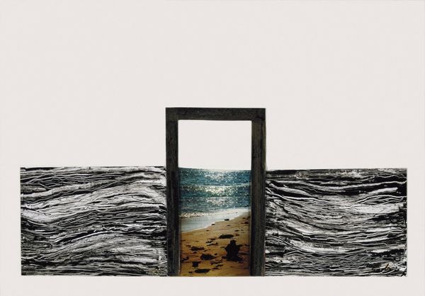 Here we see an untitled painting by Behjat Sadr, an Iranian artist who challenged convention. She spent time in both Iran and Europe. Her art reflects a dialogue between her cultural heritage and her experiences in the international art world. Sadr’s non-traditional methods and abstract style broke away from the expectations of women artists in Iran. The painting merges a photograph of a beach, bisected and mirrored, with an expressionistic wooden frame, rendered in thick, gestural strokes. The beach scene offers a serene, open space while the frame is dark. These act as barriers or perhaps framing devices. Sadr once said, "I seek to capture the dynamism and fluidity of life." This piece embodies that sentiment. It invites us to contemplate the interplay between nature and artifice, freedom and constraint, and the self and the world. Sadr pushes us to consider our own perspectives, and the boundaries we construct.