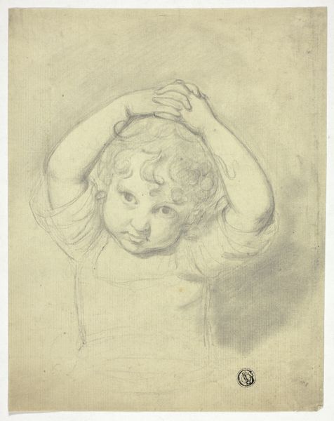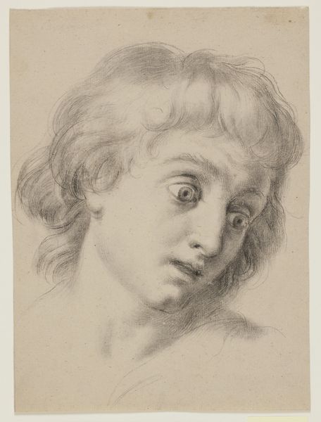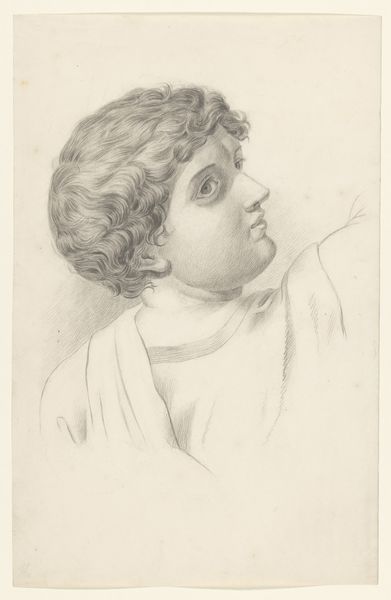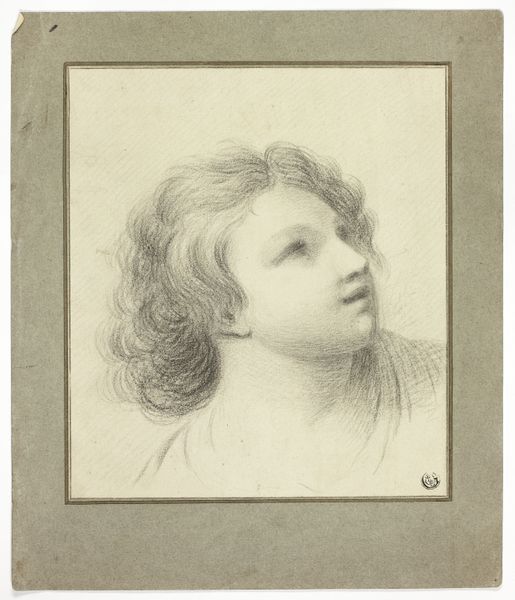 Therèse Éléonore Lingée created this sanguine drawing, "Study, Head of a Boy," using red chalk. Immediately, the curls capture your attention, a mass of intricate spirals achieved through short, deliberate strokes. Lingée masterfully uses the chalk to create depth, with areas of dense hatching giving way to lighter, more airy passages, evoking a sense of three-dimensionality on a flat surface. Consider how the formal qualities destabilize established portrait conventions. The subject is off-center, and the gaze is directed away, creating a sense of detachment. The lack of idealization disrupts the traditional representation of childhood innocence and beauty. Lingée presents a study in form and light rather than a sentimental portrait. The drawing becomes a semiotic exercise, inviting us to decode the relationship between line, tone, and the construction of meaning. Lingée's work reflects a broader artistic and philosophical concern with the nature of representation. It functions not merely as a study of a boy's head, but as a meditation on the very act of seeing and interpreting.