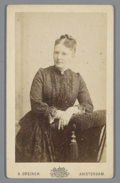 This photographic portrait of an unknown woman was made by Machiel Hendricus Laddé in Amsterdam. Laddé was a Dutch photographer who lived from 1866 to 1932. Although we don't have a date for the image, the existence of Laddé’s studio during this period points us to a specific cultural moment in the history of photography, when the medium’s accessibility grew and commercial studios proliferated. Photography played an important role in shaping social identities. As photography studios became more common, portraits like this became powerful status symbols for the middle class. To understand this photograph better, further research into the social history of photography in the Netherlands, photographic studios such as that of Laddé, and the evolution of portraiture during this time would be invaluable. It would allow us to explore the image's impact on shaping social perceptions and cultural values.