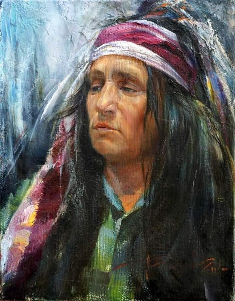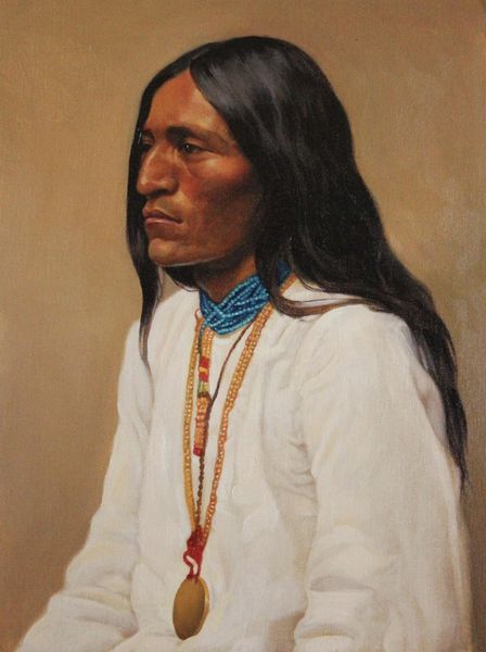 Aleksander Belyaev's painting, "The Chief," captures a Native American leader, adorned with symbols deeply embedded in cultural meaning. The feather, a prominent motif, signifies a connection to the spirit world and is often associated with honor and respect. The beads indicate status and tribal identity, reflecting a shared cultural heritage. Note how the weight of leadership is etched onto his face, the furrows and lines telling a story of responsibility and resilience. We see such solemn expressions in classical Roman portraiture, where gravitas and wisdom are visually conveyed through the depiction of age and experience. Such depictions are found across cultures: the stoic visages of ancient rulers, the serene faces of religious figures, all carrying the weight of their roles. This image invites us to consider the cyclical nature of leadership and the burdens it imposes, an echo across time.