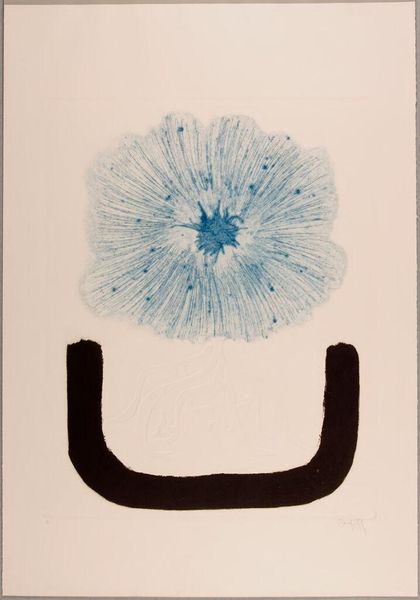Editor: Here we have "Meun," a mixed-media painting by Simon Hantai, created in 1967. It's strikingly blue. What's immediately apparent is the rhythmic repetition of these almost organic forms against the white background. What do you see in this piece that maybe I’m missing? Curator: Formally, I observe the dynamic interplay between positive and negative space. The composition commands attention, with its clustered forms creating a visual tension. Consider how the artist utilizes the stark white background, not merely as an absence of color, but as an active element defining the shapes and contributing to the overall spatial relationships within the canvas. Do you notice the surface quality of the medium itself? Editor: Yes, I see the brushstrokes, they look almost textural. So, the paint isn't just blue; it *feels* blue. Curator: Precisely. The gestural quality of the application enhances the sense of immediacy and physicality. How does that gestural quality contribute to its meaning? Editor: Well, it seems less controlled, maybe more spontaneous, not planned? It seems like that active brushwork really defines the space and is just as important as the color choice itself. I suppose without it, it would look flat? Curator: Indeed, it moves us beyond the pictorial and invites us to consider the sheer materiality of paint and its application as a subject in itself. A tension emerges from the push and pull of color. What have you learned? Editor: I’ve never really considered abstraction in such a technical sense; looking at the brushstrokes and the space as a main way to analyze it is super useful. Curator: Understanding how to formally analyze art opens up a deeper level of meaning within even the most abstract pieces. The painting becomes less about subject, and more about visual components.