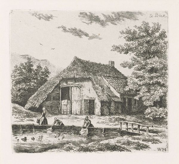 David van der Kellen created this etching, titled "Hunter in a Landscape," in the Netherlands sometime in the mid-19th century. At first glance, this print seems like a simple pastoral scene but it speaks to a time of social and economic transition. The Netherlands was undergoing a period of modernization, and landscapes became a popular subject in art. What might seem like a simple depiction of nature can also be seen as a commentary on the relationship between humanity and the environment. The hunter, a figure of authority and control, is set against the backdrop of the natural world, raising questions about human intervention and the changing landscape. To truly understand this artwork, one might delve into the cultural and historical context of the Netherlands during this period: economic shifts, urbanization, and the changing role of the individual in society. By examining these factors, we can gain a deeper appreciation for the ways in which art reflects and comments on the social structures of its time.