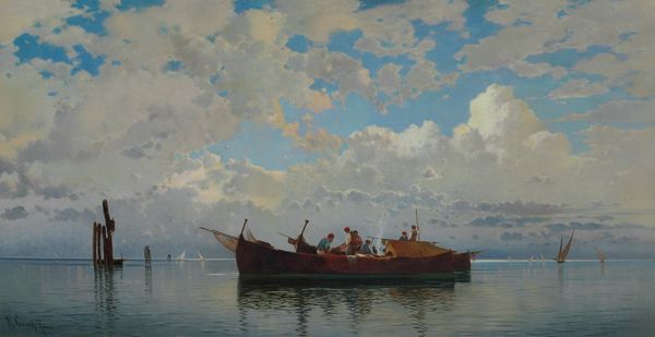 Hans Gude painted "The Oslo Fjord" in the mid-19th century, capturing the essence of Norwegian coastal life. The painting evokes ideas of national identity deeply intertwined with the sea and maritime activity. Here, Gude presents a scene that's both picturesque and subtly infused with Norway’s cultural and economic realities. The distant sailing ships nod to Norway’s historical reliance on maritime trade, while the fishermen in the foreground connect us to the everyday lives of Norwegians. Norway, during Gude's time, was experiencing a surge in national romanticism, seeking to define its identity separate from Swedish rule, so artists looked to the landscape and traditional ways of life for inspiration. Looking at the composition, we see the play of light, typical of Gude’s attention to atmospheric conditions. It's interesting to consider how institutions like the Düsseldorf Academy, where Gude taught, shaped his style and contributed to the broader European tradition of landscape painting. To understand Gude fully, scholars might look at the economic records of the fishing trade during this period, and the cultural debates of Norwegian independence. Art always speaks within specific contexts.