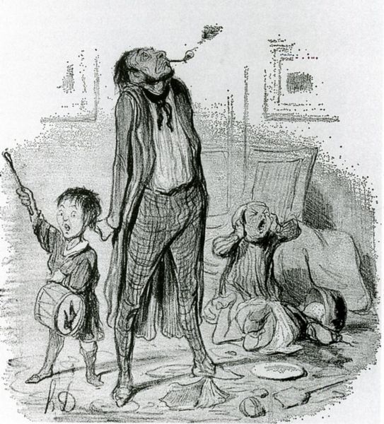 This is an illustration by Wilhelm von Kaulbach, likely made in the mid-19th century, using techniques of etching or engraving to create this black and white image. The density of lines gives it form and texture. What I find most compelling about this image is the way it repurposes the aesthetics of academic art for satirical purposes. The figures are rendered with considerable skill, particularly their clothing. And yet, all of this craft is put in service of a fairly vulgar joke, with power dynamics, politics, and social critique all presented. Kaulbach's choice of printmaking as a medium is also significant. Unlike painting or sculpture, prints are made to be reproduced and disseminated widely. This means that his message, whatever it may be, was intended for a broad audience. In this context, the labor involved in creating the image—the careful work of the engraver—becomes part of the artwork's meaning. It's not just about what is depicted, but also about how it was made and who it was made for. This piece encourages us to think about the social life of images and to see the hand of the artist not just as a maker of beauty, but as a commentator on the world.