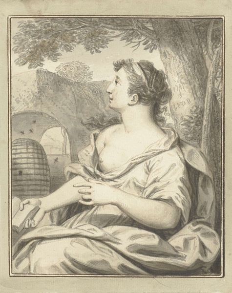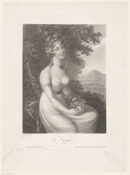 This is A.J. Defehrt’s “Personification of Summer,” an engraving, meaning it was made by carefully incising lines into a metal plate, inking it, and then pressing it onto paper. Engraving was a highly skilled, labor-intensive process. Here, it creates a delicate balance between light and shadow, capturing the textures of the flowing dress, the bundle of harvested wheat, and the feathery trees in the background. The allegorical figure of summer is entwined with nature, holding the tools and rewards of agricultural labor. Consider the social context: while this image idealizes rural life, it also speaks to the economic realities of 18th-century Europe. The harvest was a crucial time, and those who labored in the fields were essential to society, yet often overlooked. The print invites the viewer to contemplate the relationship between the seasons, human effort, and the abundance of nature. Ultimately, this print reminds us that even seemingly simple images are the result of human ingenuity, technical skill, and the complex relationship between art, labor, and the natural world.