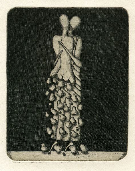 Oleksandr Aksinin made this print, "Glasses," sometime before 1985, using what looks like pen and ink. I love the way Aksinin is working in a limited palette and repeating marks to create something magical. The texture is incredible, like the dark blue ground is alive with tiny dots, and the "glasses" themselves, or are they towers?, have this shimmery, almost vibrating quality. Look at how each little dot of ink has been carefully placed to build up the image, like a kind of pointillist vision of the world. It feels obsessive, but in the best way, like the artist is really seeing and feeling every little bit of what he's depicting. That repetition creates rhythm, but it also feels like a meditation, a way of slowing down and paying attention. Aksinin's work reminds me a bit of Paul Klee, in that way of finding big meaning in small marks, of building up a whole world from simple shapes. It's a good reminder that art isn't always about grand gestures, but about the power of process, too.
