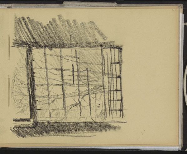 Curator: This unassuming sketch offers such a quiet mystery. We’re looking at "Studie af et kirkerum, Bjernede kirke?", which translates to “Study of a Church Interior, Bjernede Church?" made by Agnes Slott-Møller in 1912. Editor: Intimacy, yes? That's what strikes me first. It’s just…lines, so faint, yet they speak of immense, solid forms. The implied labor involved in raising these arches... one can almost feel it! Curator: Indeed. Agnes, of course, was part of the Symbolist movement, even though her artistry touched on so many styles. The form of things was very important to her and that simple line really shows us everything that form holds for her. I wonder what brought her to Bjernede Church. It is a peculiar church, very old... Editor: Old stone. Think of the quarry. The tools... I wonder what kind of pencils she was using, if you look closely there are many small strokes... all made by hand of course. All those trips from site to shop or home. Even the paper has texture. Curator: Absolutely, the repetitive labor that would result in paper sturdy enough to accept her thoughts is no small thing! The lines themselves speak volumes, too, don't they? There is a lovely intimacy and the lines repeat like prayers in an almost musical form. Editor: A choir of arches. The marks accumulate like layers of sediment, time rendered in graphite. Did she labor over it for days, weeks? I'm interested in this record of labor that drawing leaves on paper! Curator: Well, even if we can’t know the duration with any certainty, it has left us this potent echo of space and intention. You’ve grounded us marvelously in the physicality of its making and I’m walking away considering all the labor – physical and spiritual – locked within it. Editor: I am moved by our material contact and the potential ways this contact shapes our view.