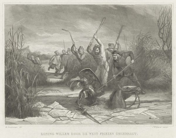 Johann Wilhelm Kaiser created this engraving, depicting 'Arnulf, Count of Holland, falling in battle, 993'. Note the raised swords, a motif echoing through antiquity, from Roman gladiatorial combats, where a raised sword signalled submission or triumph, to medieval battle scenes, like we see here. The raised sword is not merely an instrument of war; it is a symbol, passed down through history, embodying power, justice, and divine will. Yet, its meaning shifts: In antiquity, it indicated control over life and death, while in Kaiser’s depiction, it signifies feudal warfare and territorial disputes. The subconscious appeal of such gestures is powerful; consider the psychological impact of witnessing a weapon raised, poised to strike. It stirs primal fears and instincts, engaging viewers on a deep, subconscious level. We find this motif resurfacing in modern cinema, political rallies, and even video games, each time adapted but always resonating with its ancestral power. The cyclical progression of the sword is ongoing: in each new context, it takes on new meanings, mirroring the historical context.