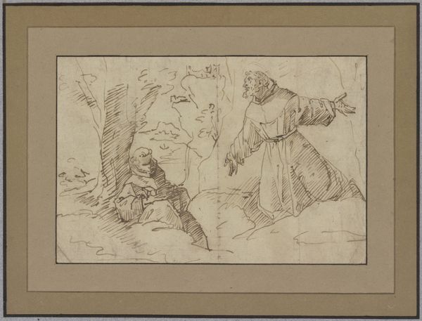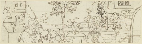 Kate Greenaway made this small pencil drawing entitled 'Two Figures Walking.' At first glance, the composition is a study in soft linearity. Greenaway uses delicate, almost tentative lines to construct the scene. Note how the figures, dressed in what appears to be period clothing, are rendered without strong definition, their forms gently blending with the background. The lines are sparse, just enough to suggest form and space, creating an airy, dreamlike quality. This drawing, though simple, touches on important aspects of representation. The sketch-like quality emphasizes the process of making, reminding us that art is as much about thinking and seeing as it is about final execution. The lack of detail invites the viewer to fill in the blanks, participating in the act of creation. Greenaway's choice to leave the drawing in a preliminary state opens up a space for reflection on how meaning is constructed through visual cues. The artwork exists not as a definitive statement, but as an invitation to explore the potential narratives suggested by its delicate lines and forms.