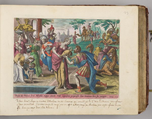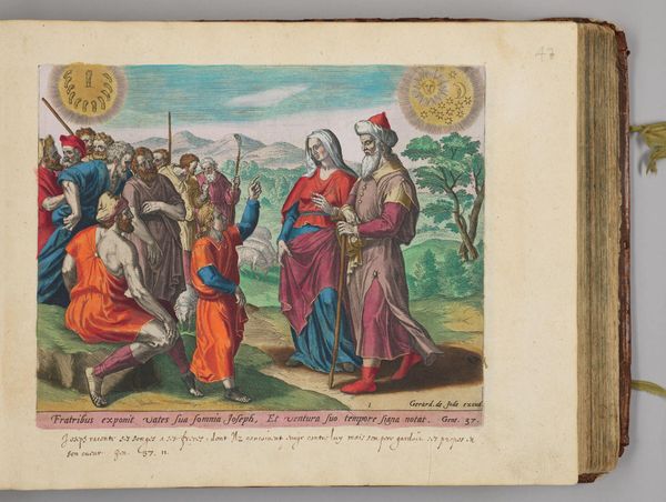 Curator: This is Hans Collaert the Elder's "Joseph Explaining Pharaoh's Dreams," a print housed at the Harvard Art Museums. The scene feels so staged, doesn’t it? What do you make of it? Editor: It does. It feels more like a theatre production than a depiction of a historical event. Is there a connection between Joseph's story and the political climate in which Collaert was working? Curator: Absolutely. Consider the context: dreams, interpretations, power dynamics… it all resonates with the fraught political atmosphere of the time. Who holds the power to interpret, to define reality? What are the implications? Editor: So, the artwork becomes a commentary on the control of narratives. Curator: Precisely! And consider the role of the artist in shaping those narratives. It urges us to question whose voices are amplified and whose are suppressed. Editor: That's fascinating. I will never look at this print in the same way again. Curator: Nor will I. The power of art lies in its ability to make us question.