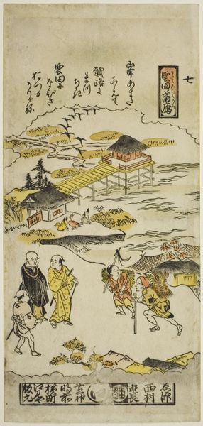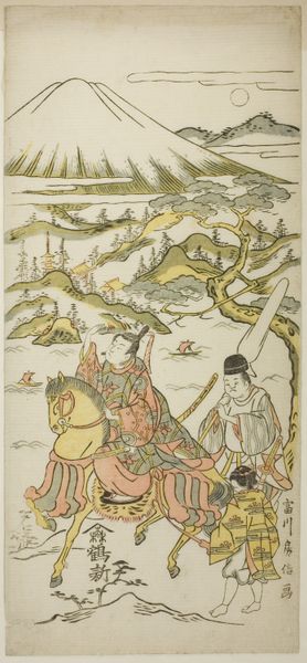 This print, *Autumn Moon at Ishiyama*, was made by Nishimura Shigenaga in the 1700s, using woodblocks and colored inks. The process of woodblock printing is quite labor intensive. First, the artist creates a drawing, which is then transferred to a block of wood, usually cherry. A separate block is required for each color. Looking closely, you can see the characteristic flatness and crisp outlines, which come from the pressure of the woodblock. The subtle variations in tone and texture reflect the wood’s inherent qualities. The paper itself, likely made from the inner bark of the mulberry tree, has a warmth and absorbency that is crucial to the image’s overall effect. This print exemplifies the Ukiyo-e style, or "pictures of the floating world," popular during the Edo period. Though often seen as "low" art, these prints were widely circulated and shaped popular taste, demonstrating how the aesthetics of labor-intensive crafts can permeate society.