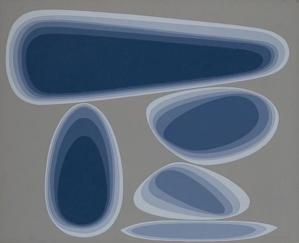 Editor: Here we have "Tower of Fire, parametric model" by Johannes Itten. The sleek curves and vibrant colours immediately grabbed my attention. What can you tell us about the formal qualities of this image? Curator: The strength of this piece lies in its masterful interplay of form and color. Note how the four ellipsoidal segments, each a distinct hue—red, blue, green, and yellow—radiate from a central nexus, creating a visually dynamic composition. Observe the tessellated surface of each segment; how does that impact your perception? Editor: I see, the tessellation almost makes them look like they’re constructed of individual modules, giving it depth and texture despite its digital origin. Curator: Precisely. The artist employs a limited palette yet achieves a rich visual experience through subtle gradations and contrasts. The parametric model suggests a rigorous underlying structure. Are there visible variations that break this underlying form? Editor: Yes! Towards the center, the colors seem to merge, disrupting the individual blocks and giving a sense of movement, as if the whole structure is swirling. Curator: Good observation! This disruption introduces a tension between order and chaos, a visual dialectic. We have clearly defined segments that give way to ambiguity. Ultimately, the piece uses an arrangement of carefully shaped components and the contrast and balance of colour create an enthralling display. Editor: I had not seen the contrasts as an opposition until now; it really puts everything in perspective! Thanks!