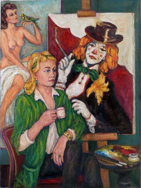 Andrey Allakhverdov painted *Marc Chagall*, using oil on canvas, though we don’t know exactly when. The colour palette is a beautiful blend of earth tones, punctuated by bold choices like the blue beard of the portrait on the easel. You can almost feel the layering of paint, the brush dancing across the canvas. I love how the painting acknowledges the messy, material process of making art. Allakhverdov really captures the tactile, physical engagement with the medium. Look closely at the figure on the easel, how each stroke adds a new dimension. He’s there and not there. I think Allakhverdov is riffing on something Chagall did himself, or maybe a dialogue. In the end, art is an endless conversation, artists influencing one another across time and space. Just as in life, things are never quite fixed; the meanings shift, and everything remains open to interpretation.