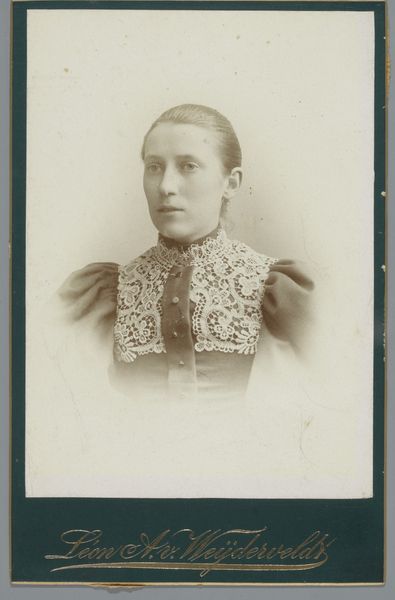 Editor: Here we have Albert Dekema's "Portrait of an Unknown Young Woman," taken sometime between 1880 and 1896, a photograph from the Rijksmuseum. It's quite a simple composition, a head and shoulders shot in sepia tones. The subject's gaze is very direct and unsmiling. What strikes you most about this piece? Curator: It’s fascinating how a seemingly simple portrait can tell us so much about the cultural landscape of its time. Consider the institutional power at play here. Photography, by the late 19th century, was becoming increasingly accessible, moving away from the exclusive domain of the wealthy. But, were portraits such as these viewed differently, perhaps even deemed less ‘artistic’ than painted portraits? What do you think fueled its burgeoning popularity across different social classes? Editor: Probably affordability and access, right? It made portraits accessible to those who couldn't afford paintings. Curator: Precisely! But it’s also the rise of a certain visual culture. Consider how the formal pose, the clothes, even the somewhat solemn expression, contribute to constructing a particular kind of identity. Are we looking at an attempt to mimic the perceived respectability afforded by painted portraiture within a photographic medium? Think of the social implications behind choosing to represent oneself in this way. Editor: So, the photograph becomes less about capturing an individual and more about conforming to social expectations. Curator: Exactly. Also, the question of who has the authority to represent whom becomes crucial. In this case, how might Dekema’s role as the photographer affect our understanding of the sitter's portrayal? This photograph offers insight into how the emerging photographic industry helped democratize representation while simultaneously reinforcing prevailing social norms. What is most interesting is that it opens up a window onto complex social negotiations regarding class, gender, and self-representation within the evolving visual sphere of the late 19th century. Editor: That’s given me a lot to think about. It really is so much more than "just" a photograph. Curator: Agreed. And perhaps thinking about the portrait itself can act as a portal into deeper social understanding.
