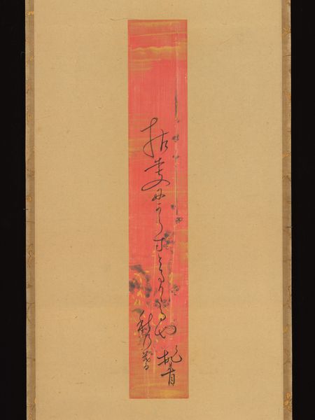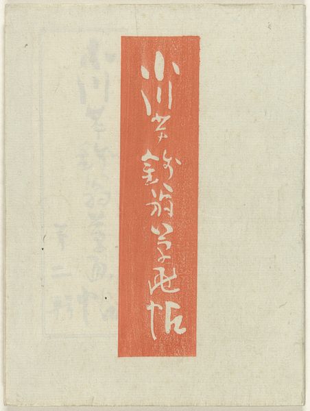 Editor: Here we have "Designs after Kōrin", a print made in 1907 by Furuya Kōrin, held at the Rijksmuseum. I’m really struck by the muted colour palette and how the floral motif almost fades into the background, creating a sort of dreamlike effect. What strikes you when you look at it? Curator: Immediately, I’m drawn to the interplay between the structured, vertical text panel and the organic, flowing floral design. Notice how the artist utilizes a limited range of tones to create subtle variations in depth. How do you feel this contrast affects the overall composition? Editor: It's an interesting tension. The rigid text imposes a sense of order, while the flowers introduce a softer, more natural element, preventing it from feeling too formal, right? The eye jumps back and forth, connecting the elements. Curator: Precisely. And observe how the background texture is not uniform. This deliberate imperfection, this surface incident, as it were, destabilizes any notion of pure symmetry or predictable pattern. Are you picking up on any elements of the composition, considered separately from any meaning they carry? Editor: Now that you mention it, the slight variations in the pressure applied during the printing process gives the floral design a unique textural quality. Almost like they're subtly emerging from the paper. Is that intentional? Curator: It is difficult to know intention definitively. From a formal perspective, however, the "unevenness" introduces a critical element of visual interest, enlivening the entire picture plane. Editor: I hadn't noticed those subtleties before! Paying attention to the composition and textural elements really adds a whole new layer of understanding to this print. Curator: Indeed. Appreciating these intrinsic elements allows us to perceive the work as a visual construction first and foremost. This helps ground us to what’s important – the design and form – before moving outward to other aspects of art appreciation.