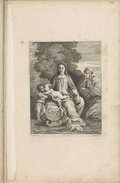 Curator: This is Carlo Gregori’s engraving, “Christ Appears to Mary Magdalene,” created between 1756 and 1759. It's currently held in the Rijksmuseum's collection. What strikes you first? Editor: It has a mournful tone. Mary Magdalene’s pose and averted gaze are quite compelling in conveying grief. I notice three cherubic figures almost dissolving into the background on the right. Curator: Absolutely. The composition leads our eye deliberately from the central figures of Christ and Mary Magdalene through the strategic use of light and shadow— a core Baroque aesthetic. What I find especially noteworthy is Gregori's handling of line to suggest Albani’s original painting with impressive fidelity. Editor: And consider the source material. This subject has significant layers. Mary Magdalene's story, her alleged past, her repentance— it’s all charged with implications about gender, sexuality, and the role of women in religious narratives. This depiction offers a lens through which the viewer is invited to reconsider patriarchal expectations. Curator: Interesting point, I hadn’t considered gender aspects overtly, though the contrast between Christ’s active stance and Mary’s contemplative posture undeniably presents a dynamic of power. However, stylistically speaking, it's worth highlighting the engraving's precise detailing and balance, achieved within a primarily monochromatic palette. Note the skillful contrast of textures, which brings volume and depth. Editor: Of course, one could interpret this image of Christ addressing Mary Magdalene as a crucial turning point. It’s a story about recognition and revelation – and a validation of her as witness. Mary’s gaze might suggest the stirrings of change or awakening that is needed even now in how marginalized voices may be heard. Curator: A valid point about her role. Overall, Gregori's engraving provides a complex interaction of light, composition, and religious narrative. Editor: Agreed. Ultimately, this is a visually and conceptually rich print that compels reflection on both aesthetic mastery and religious-cultural legacies.