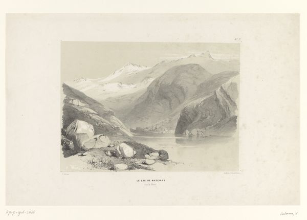 Alexandre Calame created this lithograph of the Monte Rosa near Vanzone con San Carlo. Born in Switzerland during a period of political and social upheaval, Calame came of age in the wake of the Napoleonic era. He's known for his dramatic, romanticized landscapes, which often evoke a sense of the sublime power of nature. During this period, the Alps took on a particular cultural significance as symbols of national identity. The mountains became a way for artists to express a kind of authentic, regional identity. In this lithograph, the landscape is rendered in monochromatic tones, which imbue the scene with a timeless, almost dreamlike quality. Calame invites us to reflect on our relationship with the natural world, and consider how we construct cultural and personal meaning through landscape. The scene is meant to inspire awe, but also to ground us in a specific sense of place.