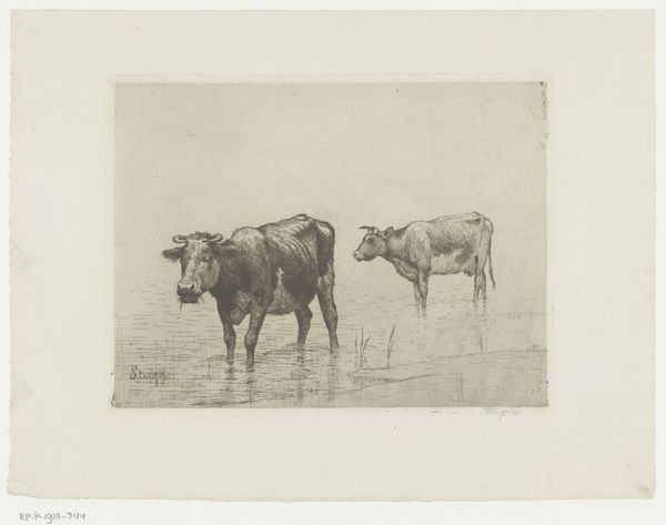 This etching by Pieter Dupont shows four oxen plowing a field. It’s all about the process, you can see how the artist carefully built up the image through precise mark making. Looking closely, you can see how the texture and the physicality of the medium play a big role. The lines are so delicate, yet they create a real sense of depth and weight, especially in the bodies of the oxen. See how the artist uses tiny etched lines to suggest the animals' muscles and the way the light hits them? And then, there's the dark, earthy furrow they're creating, so different in texture from the rest of the field. This contrast really brings out the sense of labor and movement. It reminds me a little of Millet, but with a kind of raw, graphic edge. This piece makes you think about the long tradition of artists engaging with the land. It’s about the conversation between humans, animals, and the earth, and how we keep working that relationship through art.