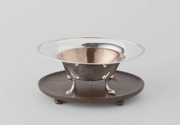This is a paten, made of pewter by Robert Clothyer. Pewter is an alloy, mostly tin, but also including smaller amounts of other metals like copper or antimony to make it stronger. To create this paten, Clothyer would have melted the pewter and cast it in a mold. The metal would then be lathed to refine the shape. The soft, grey sheen of the metal gives the paten an understated elegance. But pewter is also a relatively inexpensive material, so it was a common choice for functional objects, used by ordinary people. This example, with its simple form, speaks to the importance of craft in everyday life. While it might not be considered 'high art' in the traditional sense, the skill and care that went into its making are evident. The paten reminds us that beauty can be found in the most humble of materials, and that the process of making is just as important as the final product.