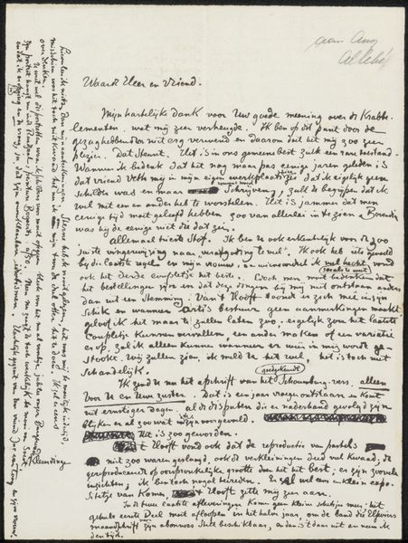 This is a letter written by Jac van Looij in 1918. The handwriting is tight and controlled, with ink that varies in tone, suggesting the speed and pressure of the pen as it moved across the page. It gives the impression of someone deeply engaged in thought and eager to communicate their ideas. Looking closer, you can see how the density of the text creates a visual texture. The lines of script form a landscape of language. Individual words are like tiny brushstrokes, accumulating to form a rich, almost abstract composition. The letter is not just a message, it’s an artifact. There’s a rhythm to the marks, a kind of dance between the writer and the page. This reminds me of the spontaneous yet deliberate way Cy Twombly approached writing and painting, using language as a raw material to construct something visually compelling and deeply personal. In both instances, the act of creation becomes a direct expression of thought and emotion. And like all good art, it opens up a space for interpretation and connection.