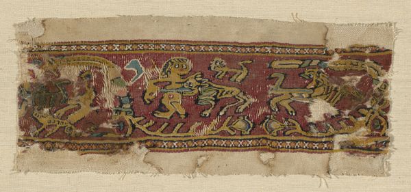 This textile fragment, of unknown date, was created by a Coptic artisan. The Copts, an ethnoreligious group indigenous to North Africa, developed a distinct artistic identity, one expressed here through the stylized depiction of a horse on a deep red field. Horses, symbols of power and prestige, were significant in Coptic society, which existed at the crossroads of Egyptian, Greek, and Roman cultures. This fragment, likely part of a larger tapestry or garment, provides insight into the cultural syncretism of the time. The very act of weaving was often a domestic task, performed by women, infusing the textile with their labor and creativity. The imperfections, the wear and tear, tell a story of survival and adaptation. Consider the hands that wove this piece, the cultural milieu that shaped its creation, and the personal connection it might have held for its original owner. This fragment connects us to the lives and histories of a community that persevered through centuries of change.