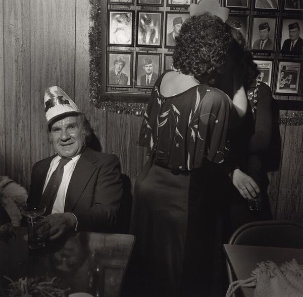 Larry Fink made this gelatin silver print, New Year's Eve Party, American Legion, Bangor, Pennsylvania, sometime in the last century. It's a record of a specific place and time, caught in shades of gray. Look at the way Fink uses light – how it falls across the faces, the hats, the clothes. It’s like he's sculpting the scene with shadows, bringing out the textures of the fabric and the character in those faces. The contrast is sharp, almost like he's digging into the moment, trying to pull something out. There is a lineage from someone like Rembrandt to Nan Goldin in this way of using light to get to some kind of deeper truth. It's not just about what things look like, but about what they feel like, and how they make us feel.